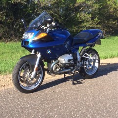 Blue 2004 BMW R1100S ; dual spark plug , stock bike